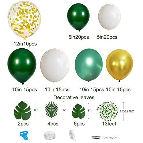 La confezione include: 10 palloncini trasparenti con coriandoli dorati da 30,5 cm, palloncini da 152,4 x 25,4 cm, palloncini da 101,6 x 12,7 cm, 1 striscia per palloncini, 1 rotolo di colla, 1 strumento per cravatta a palloncino, 1 rotolo di corda, 122,5 cm. Stili pc foglie tropicali Es, 2 pezzi di edera artificiale.
