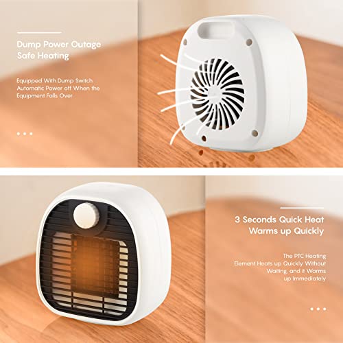 Ynport Crefreak Riscaldatore Elettrico per Interni Riscaldamento Caldo per Ambienti, Mini Stufe Elettriche per Casa/Ufficio, Ventola di Riscaldamento e Raffreddamento, Regolazione a 3 velocità, Bianco