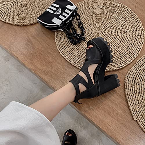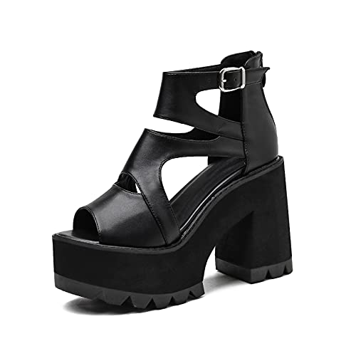 YNSNWBD Scarpe Gotiche Retro Punk Scarpe Gotiche Sandali Donna Scarpe da Gladiatore Sandali con Plateau Donna Scarpe Aperte da Donna Sandali Gladiatore Donna