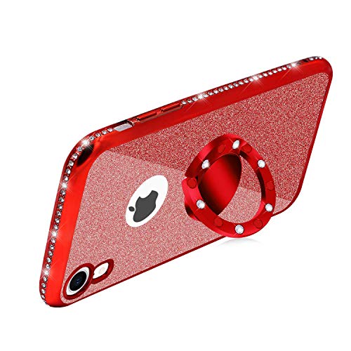 Yobby Compatibile con Cover Xiaomi Redmi Note 7,Brillantini Glitter Strass Custodia con Anello Supporto Magnetico Xiaomi Redmi Note 7 Cover Protettiva-Rosso