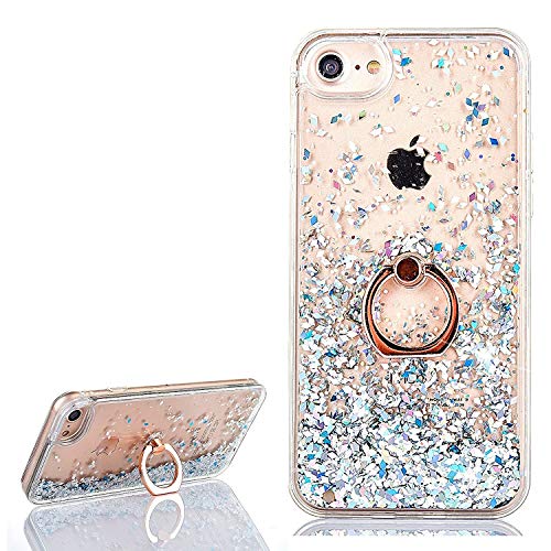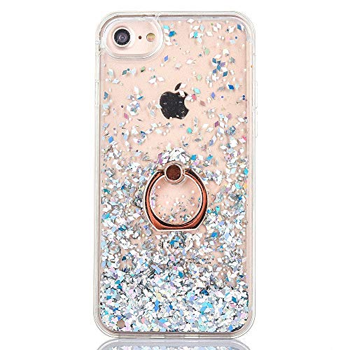 Yobby Cover per iPhone 6 Plus,Cover iPhone 6S Plus,Glitter Cuore Sabbie Mobili Brillantini Liquido Custodia con Supporto Anello Trasparenti Sottile Dura Backcover-Diamante Bianca