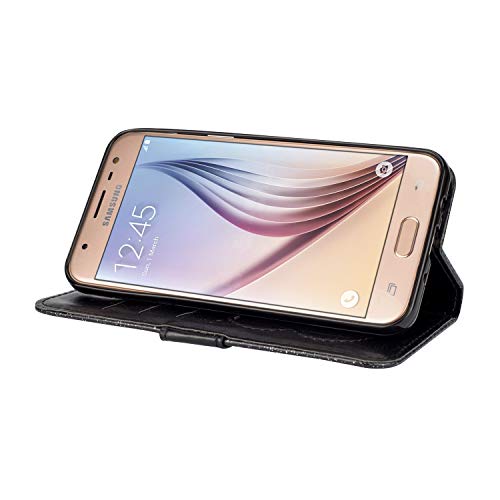 Yobby Cover per Samsung Galaxy J3 2017/J330,Bling Glitter Libro Pelle PU Slim Cerniera Magnetico Flip Portafoglio Custodia con Porta Carte Cinturino Supporto Protettivo Caso-Brillante Nero