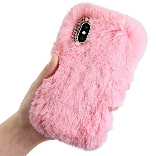 Yobby Cover per Samsung Galaxy A50,Carina Morbida Faux Coniglio Peluche Custodia,Inverno Soffice Pelliccia Antiurto Caso con Bling Cristallo Lusso Strass-Rosa