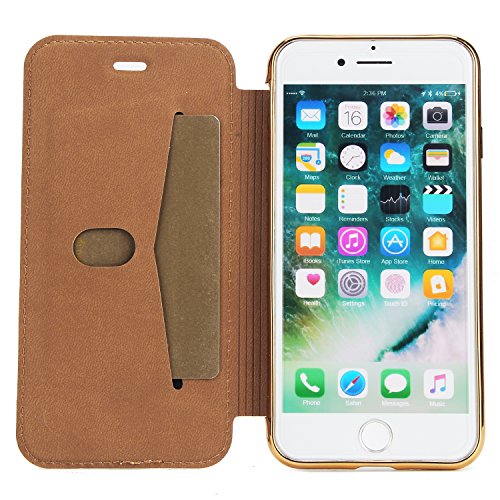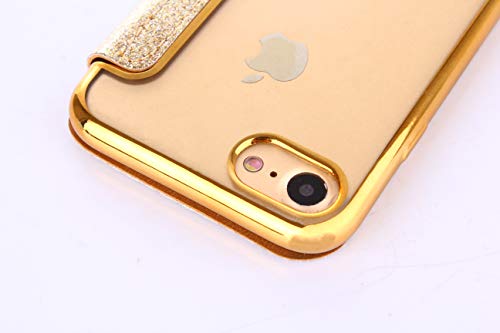 Yobby Glitter Cover per iPhone 7,Cover iPhone 8,Brillantini Pelle Flip Libro Portafoglio Custodia con Porta Carte e Trasparente Morbido TPU Indietro Placcatura Caso-Oro