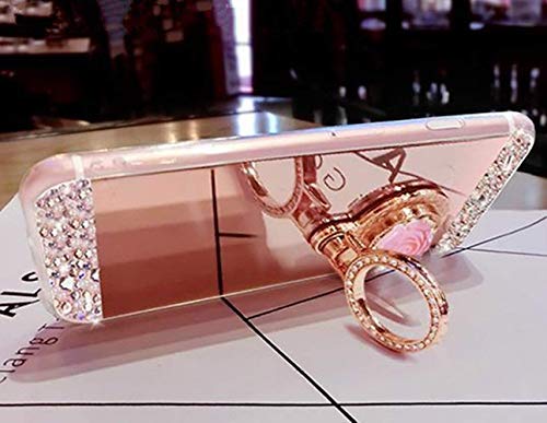 Yobby Specchio Cover per Huawei Honor 8A/Y6 2019,Glitter Brillantini Oro Rosa Custodia con Cristallo Lusso Strass Diamanti Anello Cavalletto Kickstand Sottile Gomma Bumper Protettiva Caso