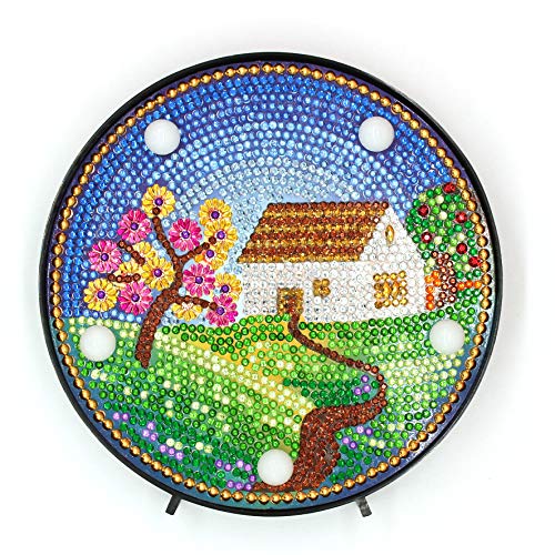 Yobeyi - Lampada per pittura a mosaico fai da te con luci a LED, kit completo per disegno di cristalli, luci notturne da comodino, decorazioni per la casa o regali di Natale, 6 x 6 cm Casa delle fate