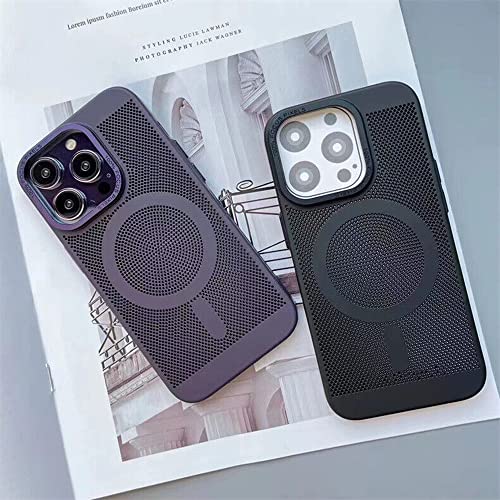 YODAOLI Cooling Breathable Mesh Wireless Charging Case for iPhone, 2023 New Heat Dissipation Steel Mesh Magnetic Attraction Case Cover for iPhone 14 13 12 11 Pro Max (Dark Blue,for iPhone 12 Pro Max)
