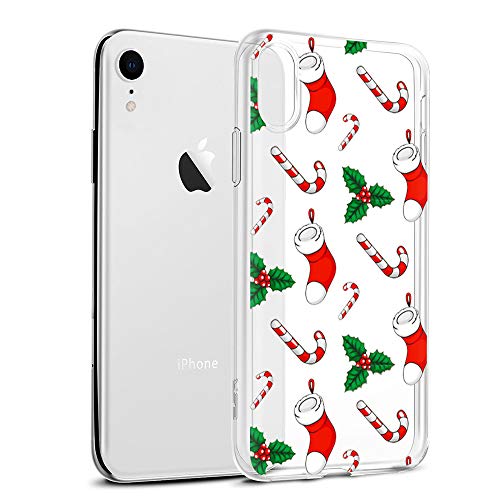 Yoedge Cover iPhone XR, Sottile Antiurto Custodia Trasparente con Disegni di Natale Ultra Slim Protective Case 360 Bumper in TPU Silicone per iPhone XR per iPhone XR (Calze di Natale 2)