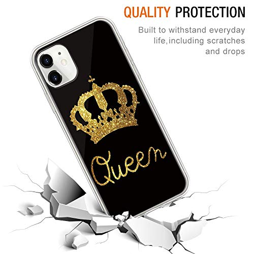 Yoedge Cover iPhone 11, [Ultra Slim] Custodia Cover Silicone con Disegni Queen King Corona Personalizzata Antiurto Morbido 3D TPU Bumper Case Protettiva per Apple iPhone11 (Queen, Nero-Oro)