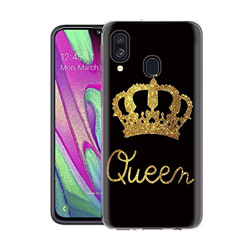 Yoedge Cover Samsung Galaxy A40, [Ultra Slim] Custodia Cover Silicone con Disegni Queen King Corona Antiurto Morbido 3D TPU Bumper Case Protettiva per Samsung Galaxy A40 Phone (Queen, Nero-Oro)
