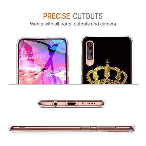 Yoedge Cover Samsung Galaxy A70, [Ultra Slim] Custodia Cover Silicone con Disegni Queen King Corona Antiurto Morbido 3D TPU Bumper Case Protettiva per Samsung Galaxy A70 (Queen, Nero-Oro)