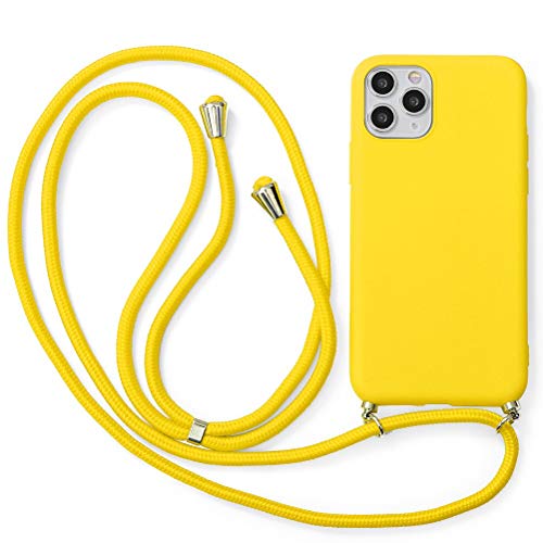 Yoedge Custodia per Apple iPhone 14 PRO Cover con Cordino Laccio Regolabile 6,1 Pollice, Ultra Sottile Morbido Silicone Leggero Soft TPU Bumper Shock Protettiva Case - Giallo