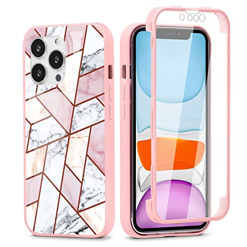 Yoedge Custodia per Apple iPhone 13 Cover 6,1", 360 Gradi Full Body Cover con Protezione Integrata dello Schermo, Trasparente Silicone TPU Anteriore e PC Indietro Custodia, Marmo 2