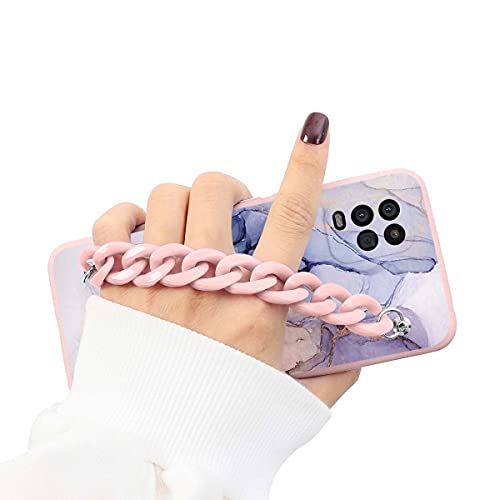Yoedge Custodia Cellulare Bracciale per Xiaomi Redmi Note 9 (5G) -6,53" Silicone Morbide Cover con Catena Colorata da Polso, Anti-Caduta Antiurto Backcover con Motivo Carino per Redmi Note9, Marmo