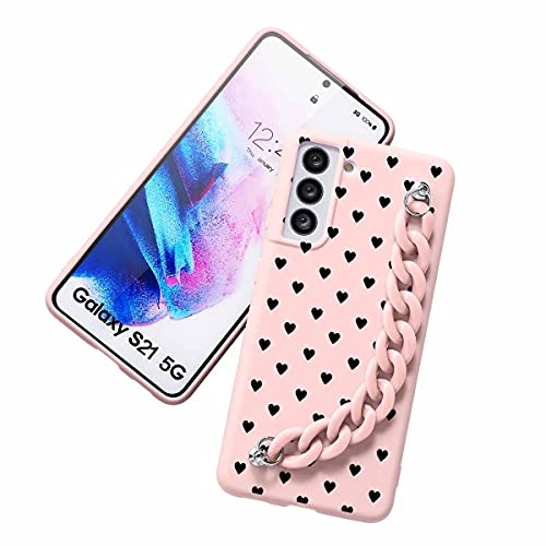 Yoedge Custodia Cellulare Braccialetto per Samsung Galaxy A52 (5G) -6,5" Silicone Morbide Cover con Catena Colorata da Polso Anti-Caduta Antiurto Backcover con Motivo Carino per Galaxy A52, Cuore 2
