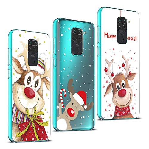 Yoedge Custodia per Xiaomi Redmi Note 9 4G da 3 Pezzi,Trasparente Morbida Ultra Sottile Crystal Clear Gel Protezione Antiurto Cover, Bella Disegno, Alci di Natale
