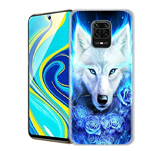 Yoedge Custodia per Xiaomi Redmi Note 9 Pro/9s da 3 Pezzi,Trasparente Morbida Ultra Sottile Crystal Clear Gel Protezione Antiurto Cover, Bella Disegno, Ghiaccio e Fuoco, Lupo