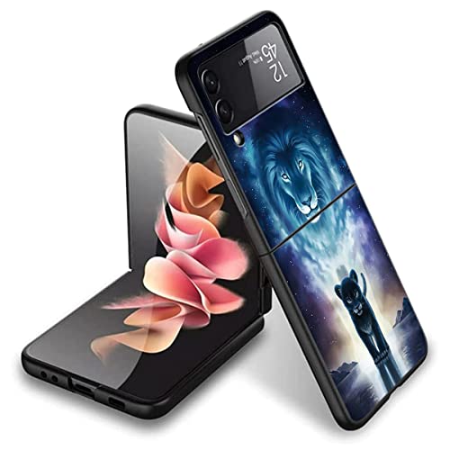 Yoedge Nera Custodie per Samsung Galaxy Z Flip3 5G 6,3", Custodia Rigida con Nero Disegni, TPU Bumper Antiurto Antiscivolo Ultra Sottile Originale Case Cover per Z Flip 3, Leone