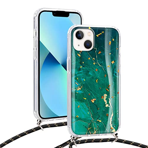 Yoedge Glitter Cover per Apple iPhone 13 6,1" con Cordino, Trasparente Morbido Silicone Custodie Marmo Disegno, Rigida PC Antiurto Brillantini Case con Laccio Tracolla per iPhone13, Marmo 9