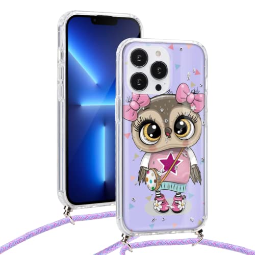 Yoedge Glitter Cover per Apple iPhone XR 6,1" con Cordino, Trasparente Morbido Silicone Custodie Marmo Disegno, Rigida PC Antiurto Brillantini Case con Laccio Tracolla per iPhoneXR, Gufo