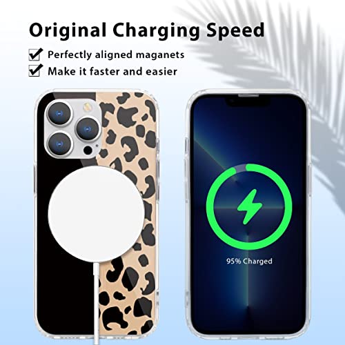 Yoedge Magnetica Trasparente Cover per iPhone 12 Pro Max con Cordino 6,7", Compatibile con MagSafe, Custodia con Collana Sottile Morbida Silicone TPU Antiurto Bumper Protettivo Case, Leopardo