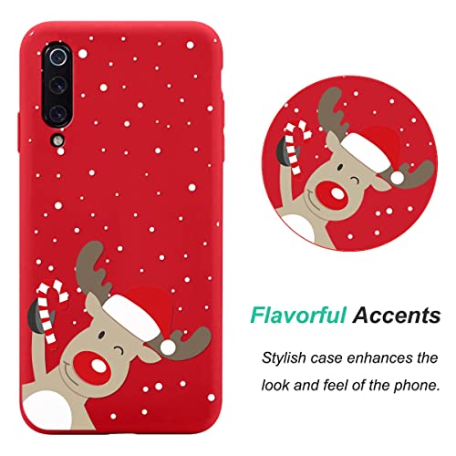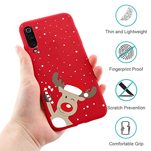 Yoedge Natale Cover compatibile con Xiaomi Mi 9 SE 5,97", Custodia in Silicone Ultra Sottile Rosso con Cartoon Natalizie Disegni, Morbida Antiurto Protettiva Case per Xiaomi 9 SE, Cervo 1