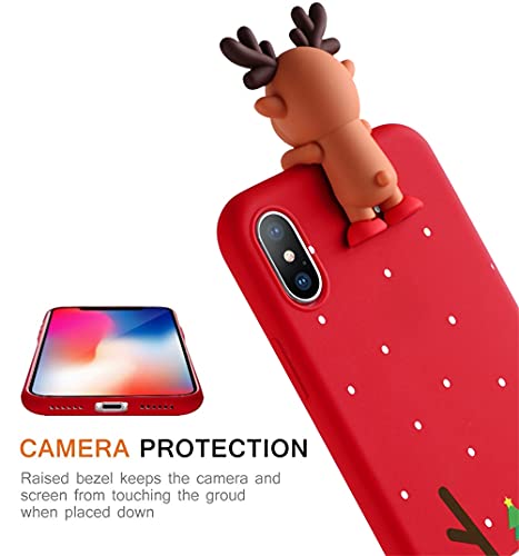 Yoedge Natale Custodia per Apple iPhone 11 Pro Max 6,5", Rosso Silicone Matte Cover con Carino 3D Bambola Cervo Natalizie, Sottile Antiurto TPU Protezione Case per iPhone 11 Pro Max, Cervo 3
