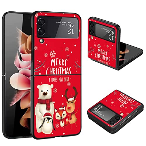 Yoedge Natale Custodie per Samsung Galaxy Z Flip3 5G 6,3", Custodia Rigida con Alce Babbo Natale Disegni, TPU Bumper Antiurto Ultra Sottile Originale Case Cover per Samsung Z Flip3, Alce 4