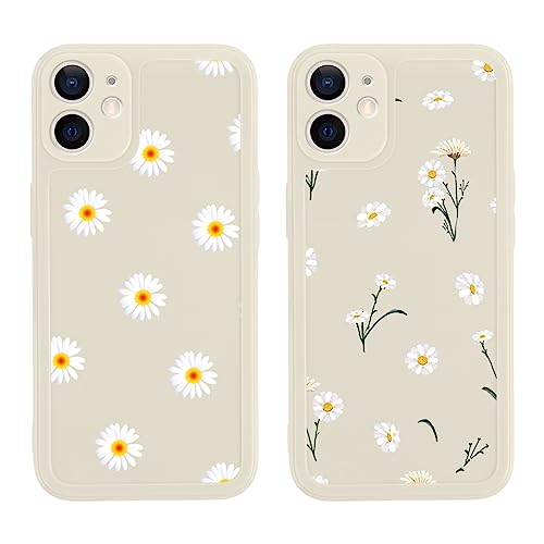 Yoedge 2 pezzi Cover per Apple iPhone 12 6,1" - Custodia Fiori per Telefono con Margherite Aesthetic Simpatica Disegni, Custodie per Cellulare in Silicone per iPhone 12 Case Ragazza Donne