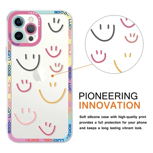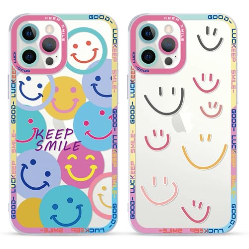 Yoedge 2 pezzi Cover per iPhone 12 Pro 6,1" - Custodia Smiley Face per Telefono in Trasparente con Aesthetic Simpatica Disegni, Custodie per Cellulare in Silicone per iPhone 12 Pro case Ragazza Donne