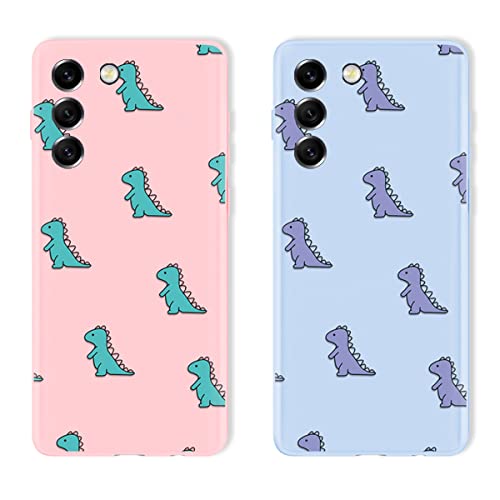 Yoedge 2 Pezzi Cover per Samsung Galaxy S21 FE 5G,Aesthetic Custodia Morbide Silicone con Dinosauro Disegni,TPU Bumper Ultra Sottile Antiurto Protettivo Case per SamsungS21 FE 6,4",Viola Chiaro & Rosa