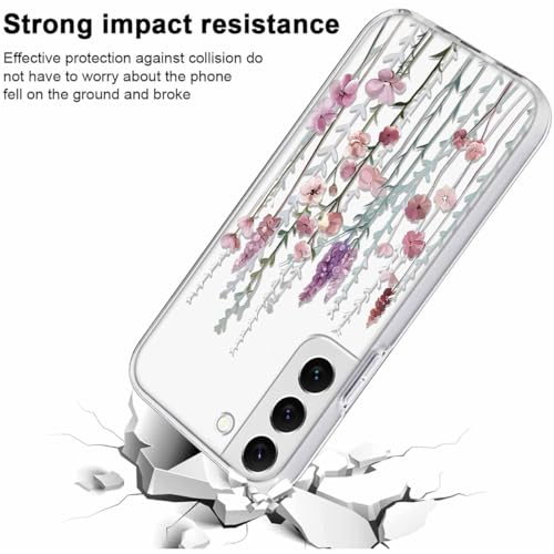 Yoedge 2 Pezzi Cover per Samsung Galaxy S22 5G 6,1", Ultra Sottile Trasparente Morbida TPU Custodia in Silicone Antiurto Antigraffio Protettiva Case con Disegni per Donne per Samsung S22 5G, Fiore 2