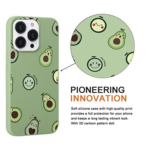 Yoedge [3 Pezzi Custodia per Apple iPhone 14 6,1 Pollici, TPU Silicone Custodia Morbida Ultra Sottile Case con Disegno,Antiurto Protettiva Originale Cover per iPhone14, Avocado