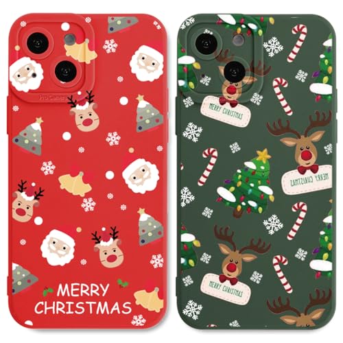 Yoedge [2 pezzi Natale Cover per Apple iPhone 12 6.1", Custodia Cute Christmas Motive Design, Morbido Silicone Antiurto Cartoons Protezione Phone Case, Babbo Natale + Alce