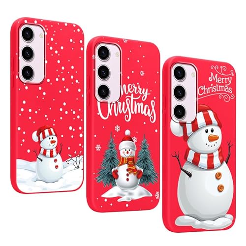 Yoedge 3 Pezzi Natale Cover per Samsung Galaxy S23 5G 6,1", Christmas Cartoon Natalizie Disegni Custodia, Ultra Sottile Morbida Silicone TPU Antiurto Protettiva Case per Samsung S23, Pupazzo di Neve
