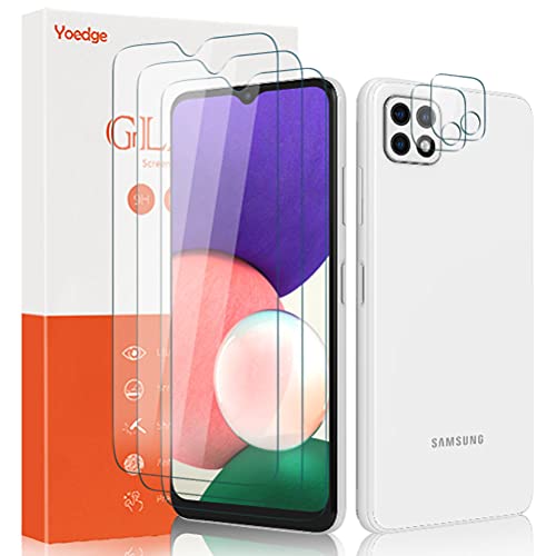 Yoedge 5 Pezzi Pellicola Protettiva Compatibile con Samsung Galaxy A22 5G 6,6", [3 Pezzi] Vetro Temperato + [2 Pezzi] Pellicola Fotocamera, Anti Graffio 9H Durezza Schermo Proteggi [Bubble-Free]
