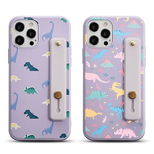 Yoedge 2 pezzi Wristband Cover Compatibile con OPPO Reno5 Z 5G / A95 5G / A94 5G / F19 Pro+ 5G 6,43", Custodia Silicone con Supporto Regolabile, Moda Disegno Antigraffio Antiurto TPU Case, Dinosauro