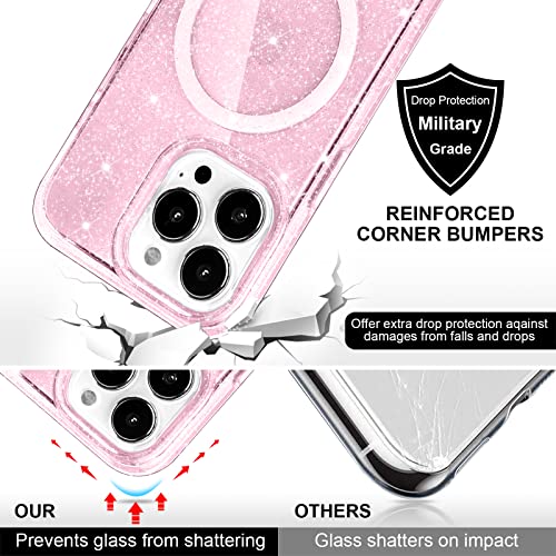 Yoedge Trasparente Glitter Cover Magnetica con Cordino per iPhone 14 Pro Max 6,7", Custodia Bling Brilla Tracolla Compatibile con MagSafe Magnetico Ricarica Wireless Case per iPhone14 Pro Max, Rosa