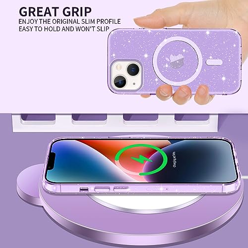 Yoedge Trasparente Glitter Cover Magnetica per iPhone 15 6,1", Custodia Bling Brilla Compatibile con MagSafe Magnetico Ricarica Wireless, Bumper TPU Hard PC Viola Case Antiurto per iPhone 15