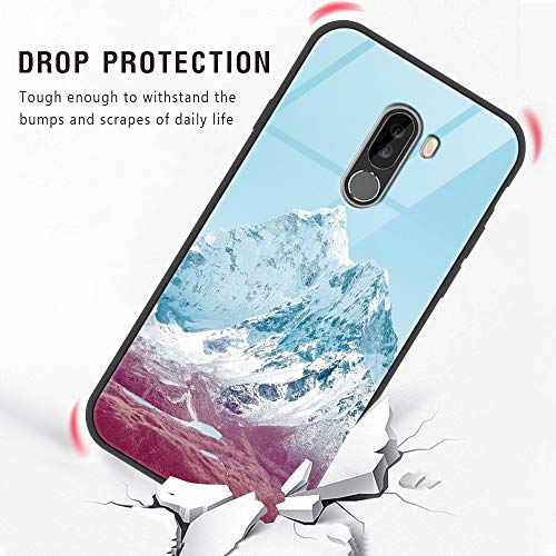 Yoedge Xiaomi Pocophone F1 Cover, [Ultra Sottile] Antiurto con Modello Disegni Custodia in Vetro Temperato [Morbido TPU Bordo in Silicone] Bumper Case per Xiaomi Pocophone F1, Montagna Della Neve