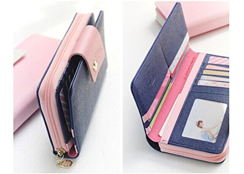YOEEKU - Portafoglio da donna, con chiusura a cerniera, in pelle PU, bicolore