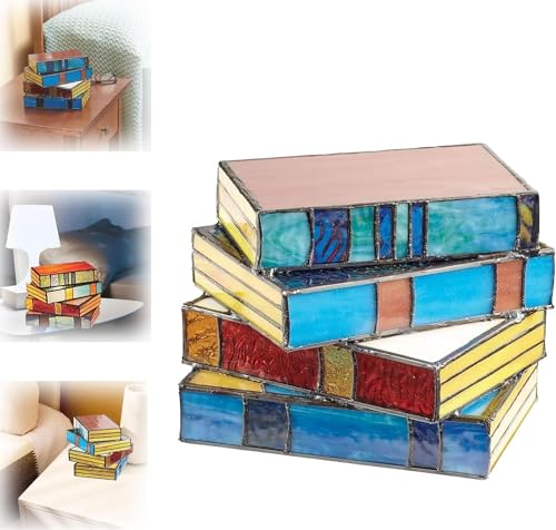【Stained Glass Stacked Books Lamp】The stained glass book stacking lamp is made of richly colored stained glass pieces carefully welded together. The appearance is formed by superimposing four retro-colored books, creating a kind of literary fun.