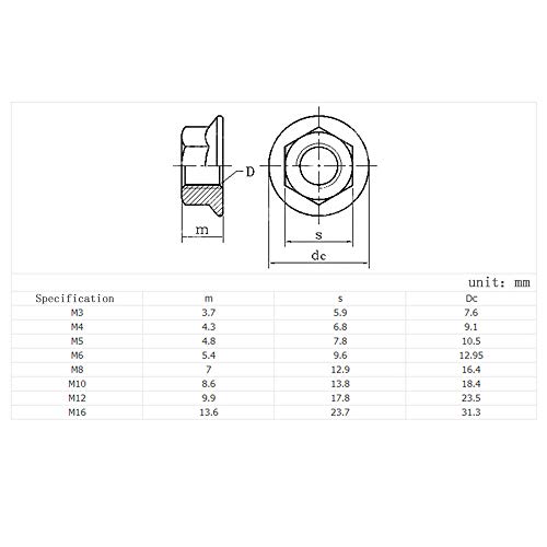 YOFASEN Dadi per Flangia - Dadi di Bloccaggio a Dado Flangiati Esagonali in Acciaio Inossidabile 304, M4-100pcs