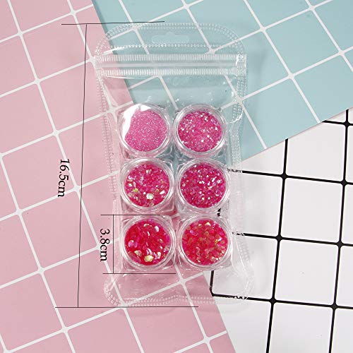 YOFASEN 6 Pezzi Glitter Mestieri Viso Glitter - Accessori per Nail Art Glitter Artigianato Paillettes Set Misto Guancia Labbra Trucco Decorazioni Fai da Te Paillettes, Rosa 2