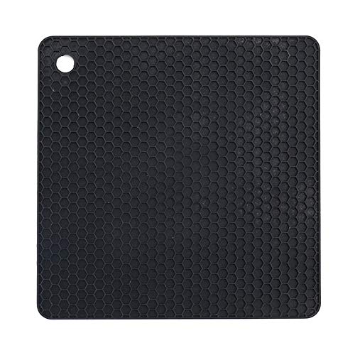 YOFASEN Sottopentola in Silicone Quadrato per Casa - Presine per Stuoia Resistente al Calore Impermeabile, Sottopentole Antiscivolo per Cucina, 18.2x18.2x0.6 cm, Nero
