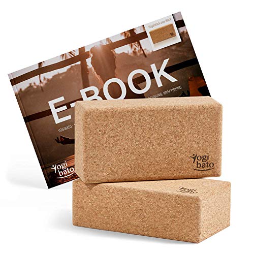 Yogibato Yoga Block sughero con e-book in inglese con esercizi| 2 Blocchi | Blocco di sughero per yoga e fitness e pilates - Mattoncini - Yogablock realizzato in sughero naturale al 100%