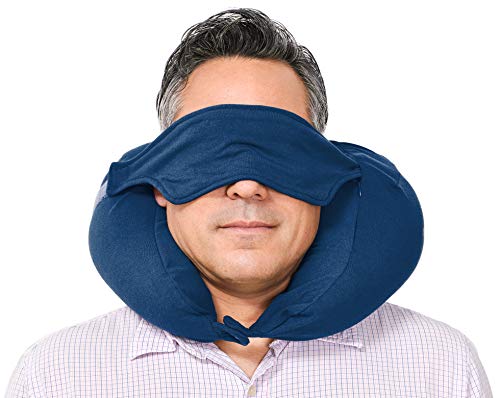 Yogibo Cuscino da viaggio Nap X per aeroplani, per dormire, riposare, cuscino per il supporto del collo include maschera per gli occhi attaccata, blu
