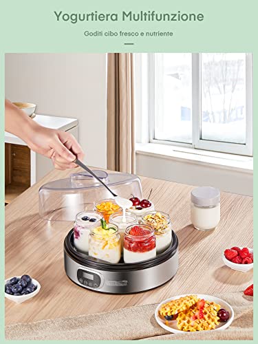 Yogurtiera Elettrica, Fohere Display LCD Yogurella con Controllo Costante della Temperatura, Digitale Automatico per Fare Yogurt e Formaggio Fatti in Casa, Include 7 Vasetti in Vetro da 200 ml