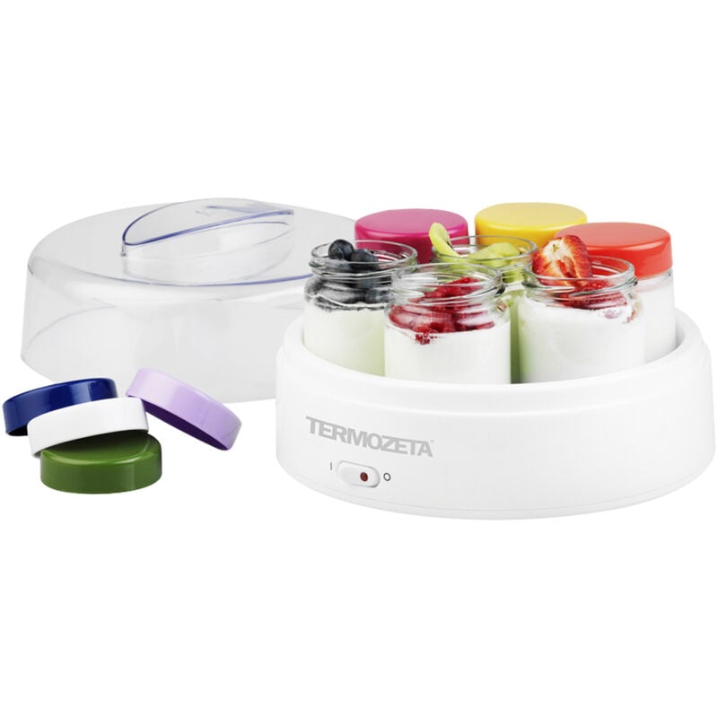 Termozeta presenta EASY YOGURT: yogurt sani e deliziosi fatti in casa Per tutti gli amanti dello yogurt da oggi c'è Easy Yogurt, la nuova yogurtiera di Termozeta per preparare deliziosi yogurt con ingredienti freschi e selezionati. Pratica e facile da usare, con Easy Yogurt è possibile realizzare sette diversi gusti di yogurt, grazie ai sette vasetti in vetro da 150 ml di cui è dotata la yogurtiera. Bianco naturale o alla frutta, con un pizzico di creatività e buona volontà otterrete i vostri yogurt preferiti. Inoltre, sarà impossibile confondere lo yogurt al naturale da quello alla fragola grazie ai coperchi colorati che aiutano a distinguere i diversi gusti. Creare artigianalmente queste sane golosità sarà facile e divertente: materie prime freschissime, un po' di fantasia e lo yogurt è pronto. Easy Yogurt è dotata inoltre di un coperchio trasparente che permette di vedere i vasetti all'interno e di un pratico interruttore on/off che rende ancora più facile la preparazione. In una