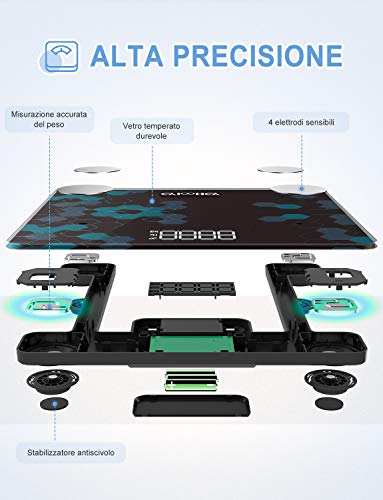 YOHOOLYO Bilancia Pesapersone Digitale con 14 Dati di Misurazione, Bilancia Pesapersone Intelligente Bluetooth, App per IOS e Android